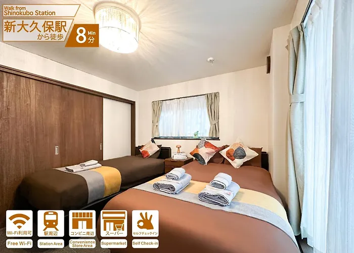 Cette villa Omotenashi Villa Shinjuku est située dans le district Arrondissement de Shinjuku, à moins de 20 minutes de marche du Siège du gouvernement métropolitain de Tokyo, et à 25 minutes à pied du Jardin impérial de Shinjuku. La villa comprend des détecteurs de fumée, à l'équipement de repassage et une climatisation dans les chambres.